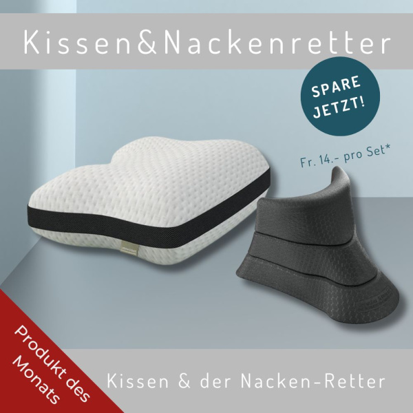 Der Nackenretter kann dich dabei unterstützen, verspannte Strukturen gezielt zu entlasten, während das höhenverstellbare Kissen dabei hilft, deinen Nacken im Schlaf angenehm zu lagern. Bei bestehenden Schädigungen im Halswirbelsäulenbereich sollte die Anwendung vorab ärztlich abgeklärt werden.