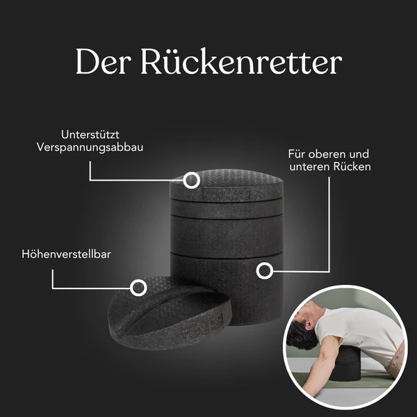 Entspannend einfach üben – das steckt hinter unserem Retter-Konzept. Ob Nacken-, Rücken- oder der ISG-Ischias-Retter, meistens heisst es: drauflegen, alle Anspannungen loslassen und spüren, wie sich die Muskeln und Faszien mühelos lockern.