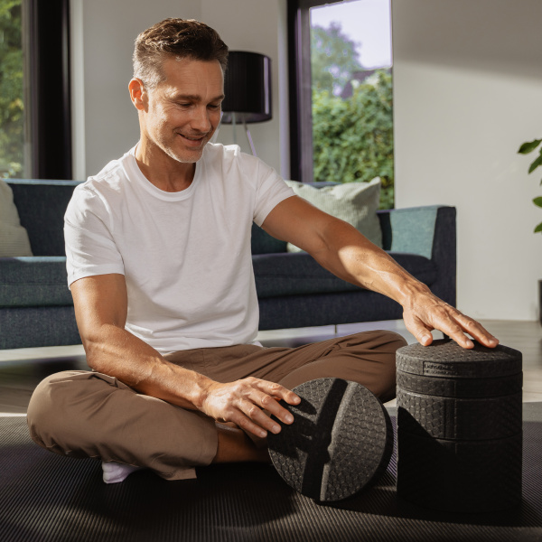 Durch die Kombination der Einzelteile kannst du die Höhe des Rückenretters individuell für Dich anpassen — und so entsprechend die Dehnungs-Intensität bestimmen