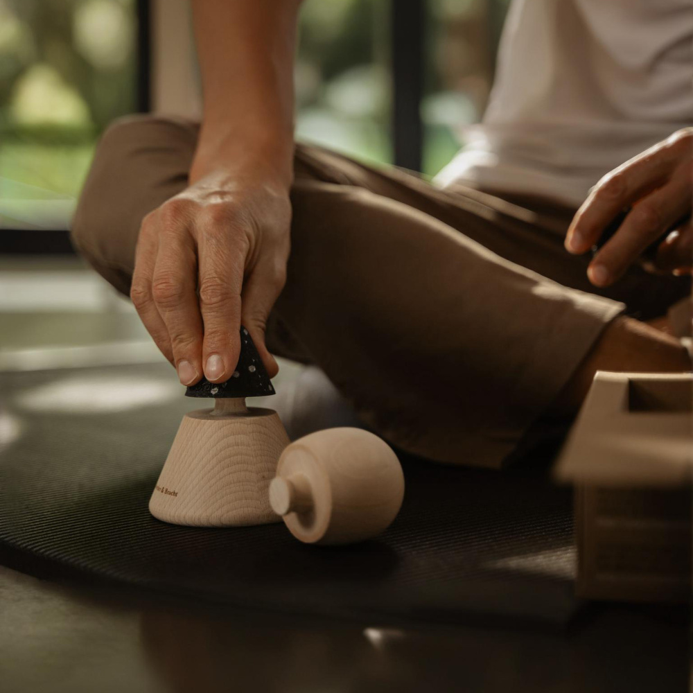 - rundes Griffstück und kegelförmiger Halter aus unbehandeltem Buchenholz