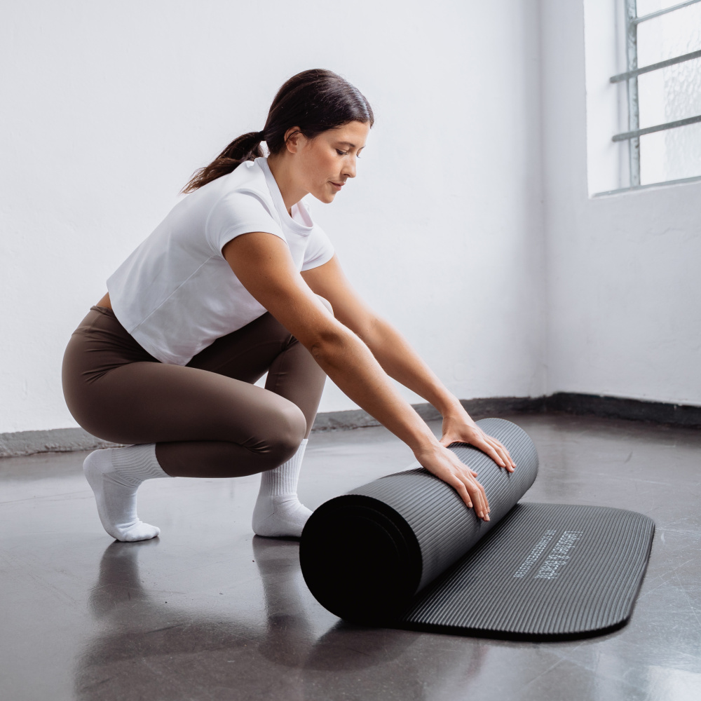 Übungsmatten werden auch als Fitnessmatten bezeichnet und sind der “Allrounder” unter den Trainingsmatten. Sie zeichnen sich im Vergleich zu einer Yogamatte durch eine höhere Dicke und Elastizität aus. Aufgrund ihrer Dicke sorgen sie für eine angenehme Polsterung der Gelenke und Knochen, denn bei vielen Übungen ruht das gesamte Körpergewicht auf dem Steißbein oder den Knien. Übungsmatten bieten einen guten Halt für Hände und Füsse und haften ausreichend am Boden.